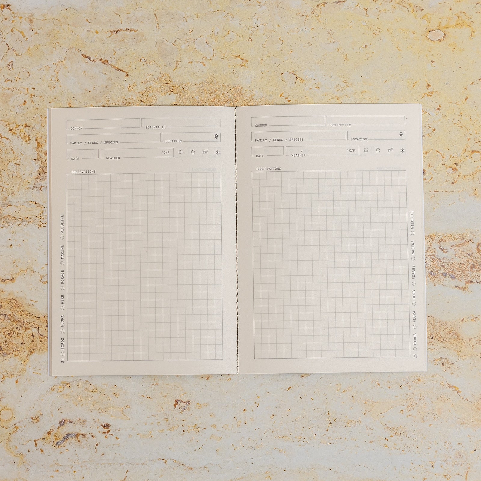 Record findings and observations from out in the field for all manner of flora and fauna. This specialty layout can collect behavioural details on birds or wildlife just as seamlessly as it records forage findings, flower pressings and fishing catches.