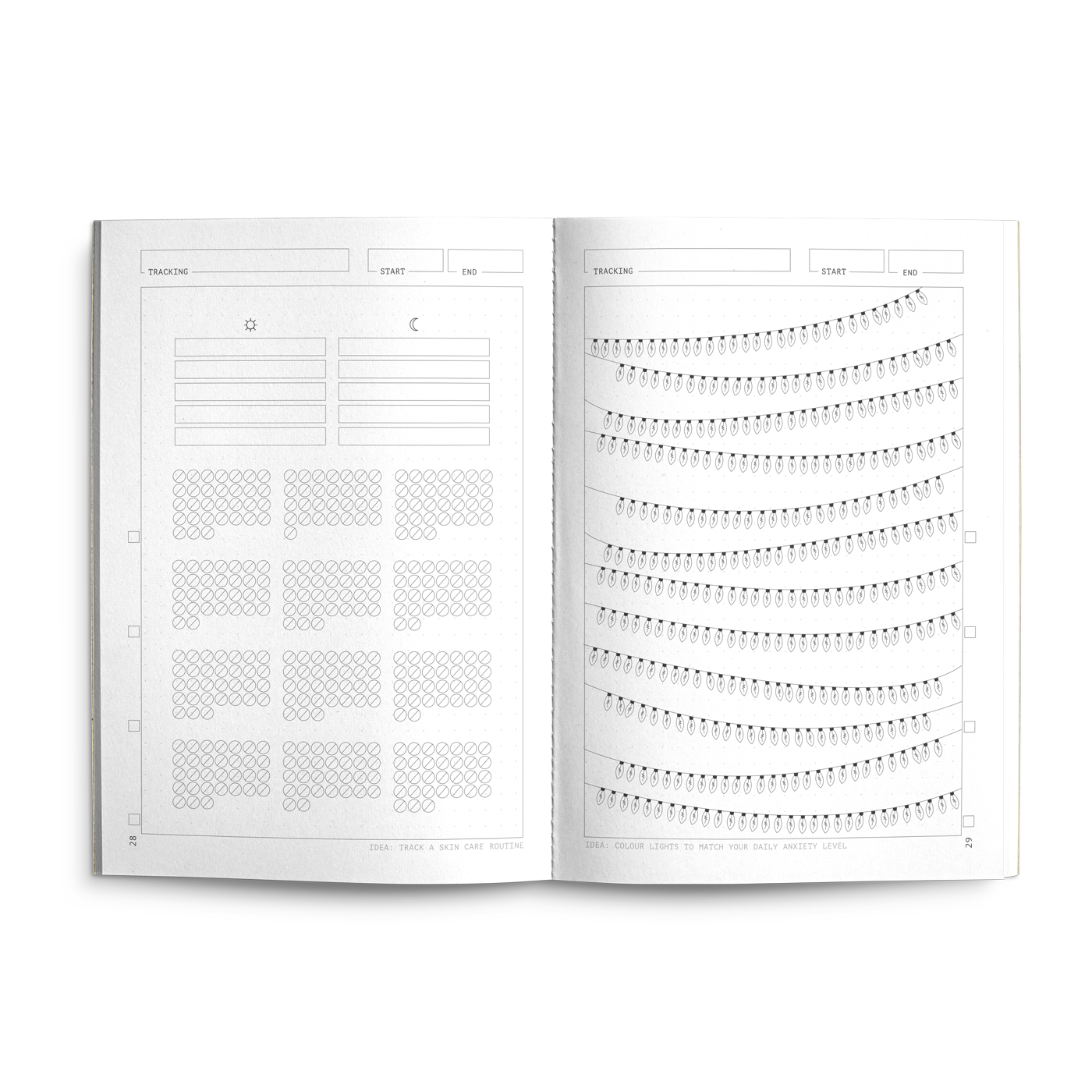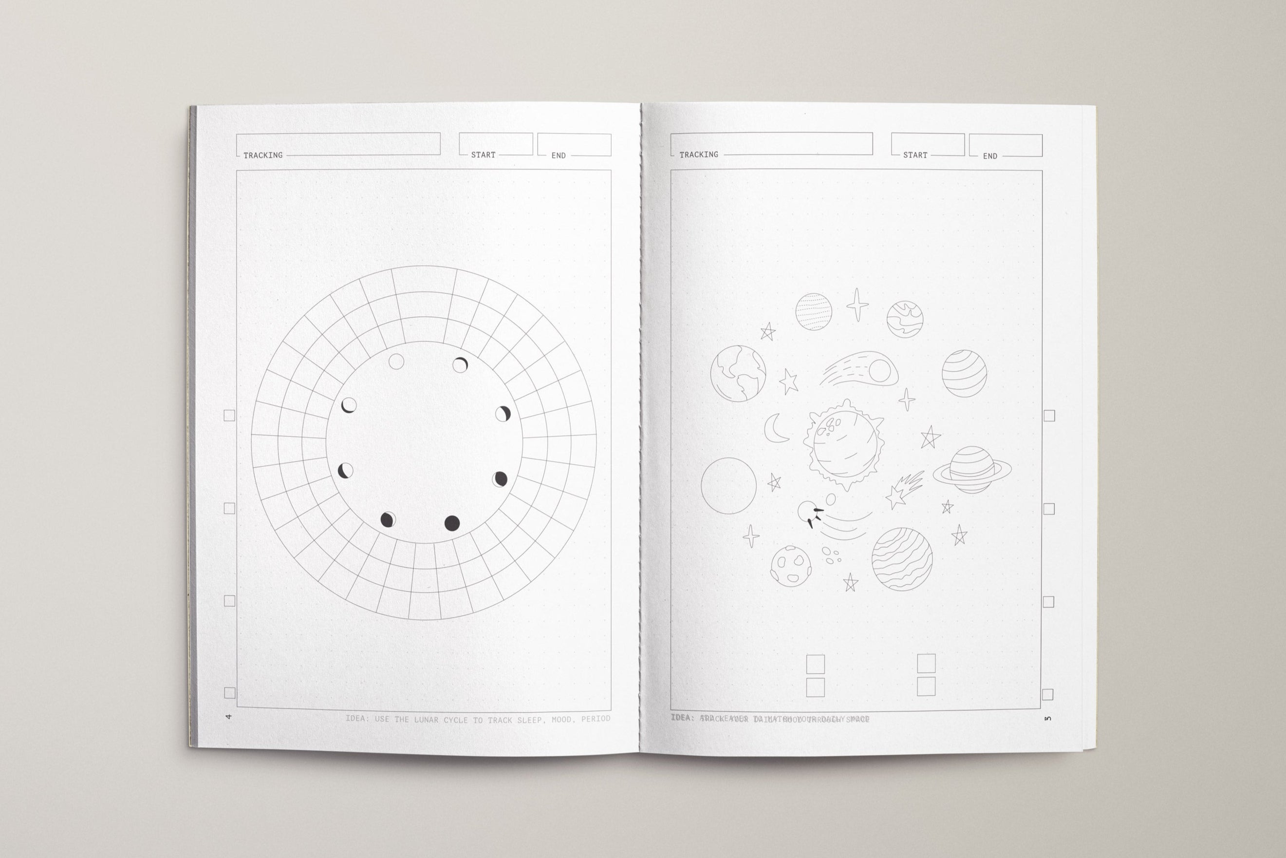 Dive into this notebook stacked with a world of different habit trackers, lunar cycles, calendars and mood logs. Find joy in building rituals around different parts of your day and establish healthy habits and mindsets along the way.