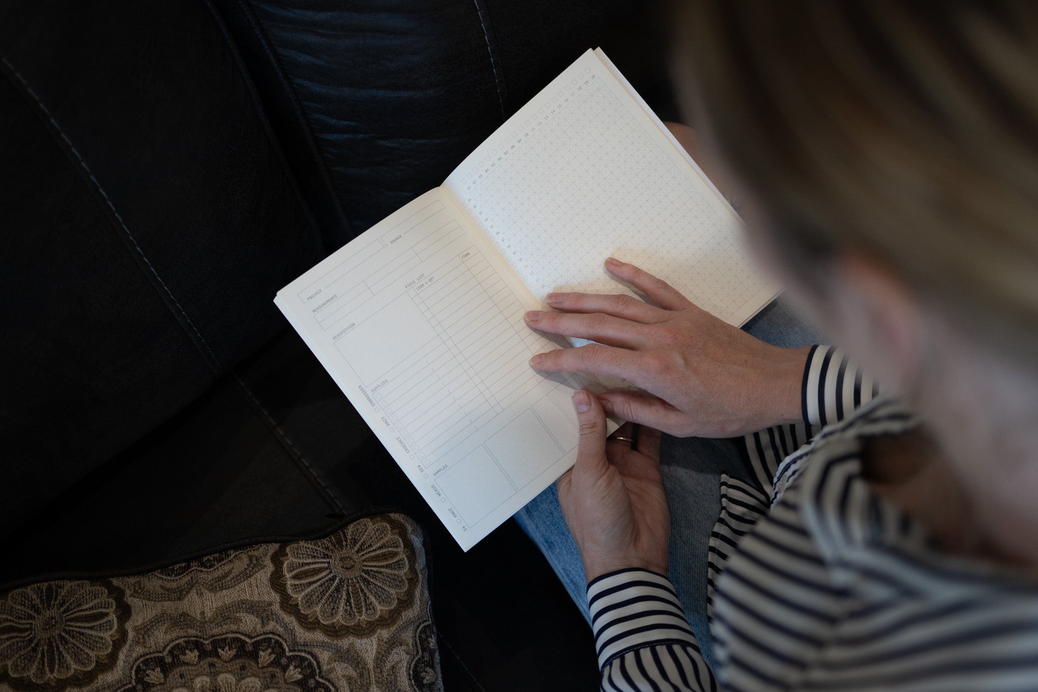 Whether you sew, knit, crochet or embroider this notebook will provide you a space to record and manage your textiles projects. The double page spread is a specialty design for detailing key information such as measurements, cut lists and swatches, as well as a custom page grid for pattern making.