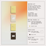 The Writers Kit colour palette has been curated to evoke feelings of warmth and dependability. The brown and creamy tones provide a sense of sophistication and dependability. This is balanced by the natural optimism and energy delivered by the yellow.