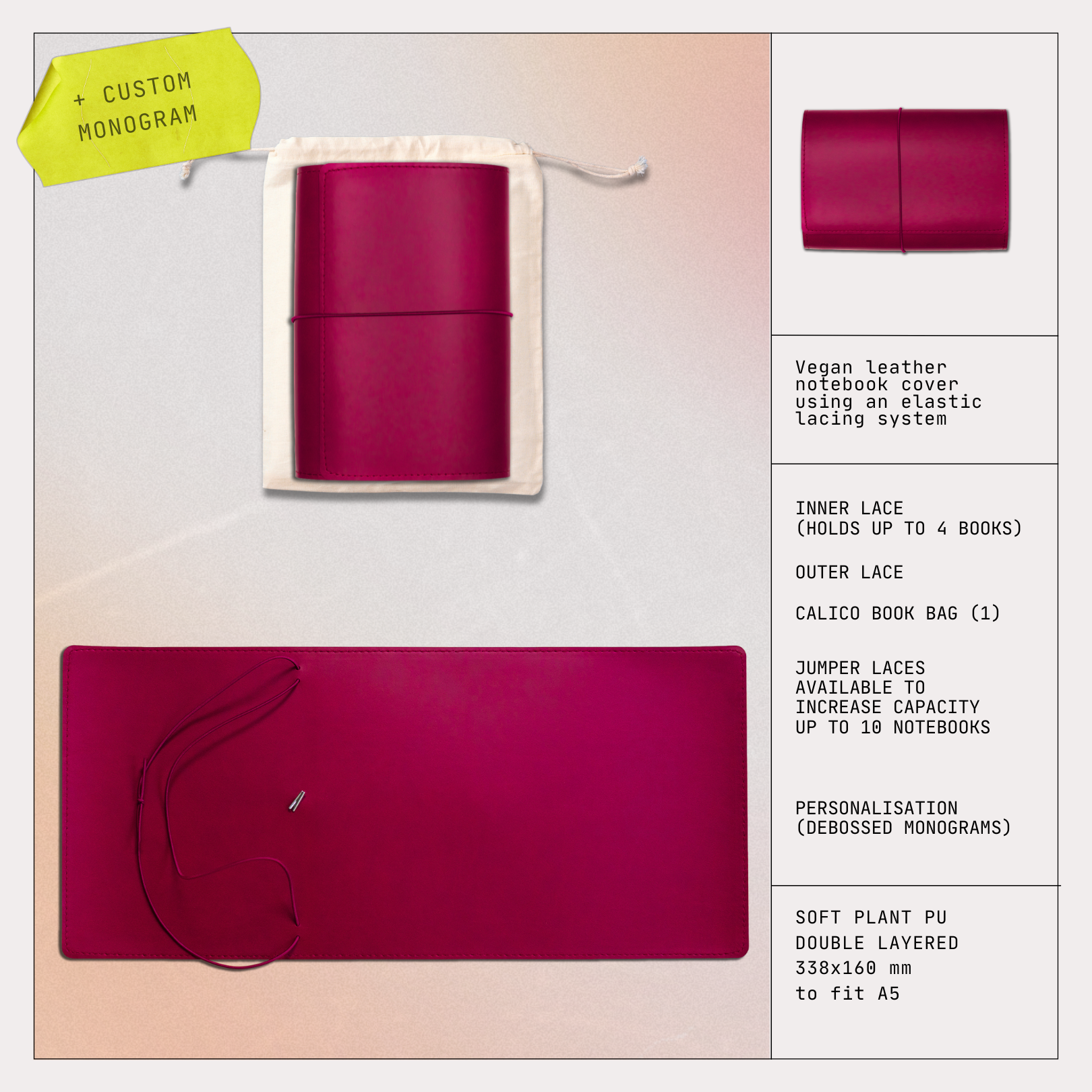 Personalise your notebook cover with a custom debossing. Heat-pressed right here in studio, a subtle monogram is the perfect finishing touch to your collection.