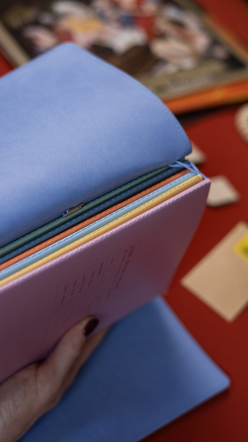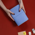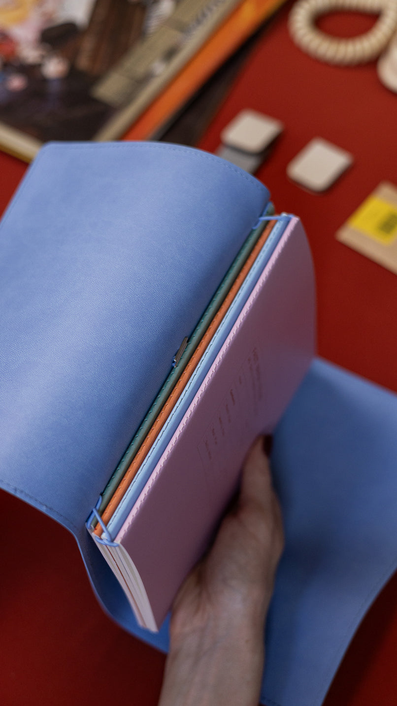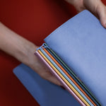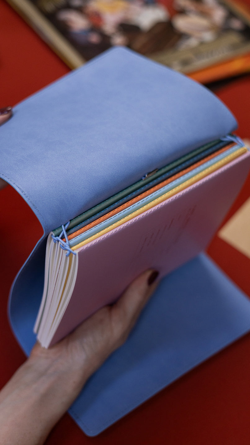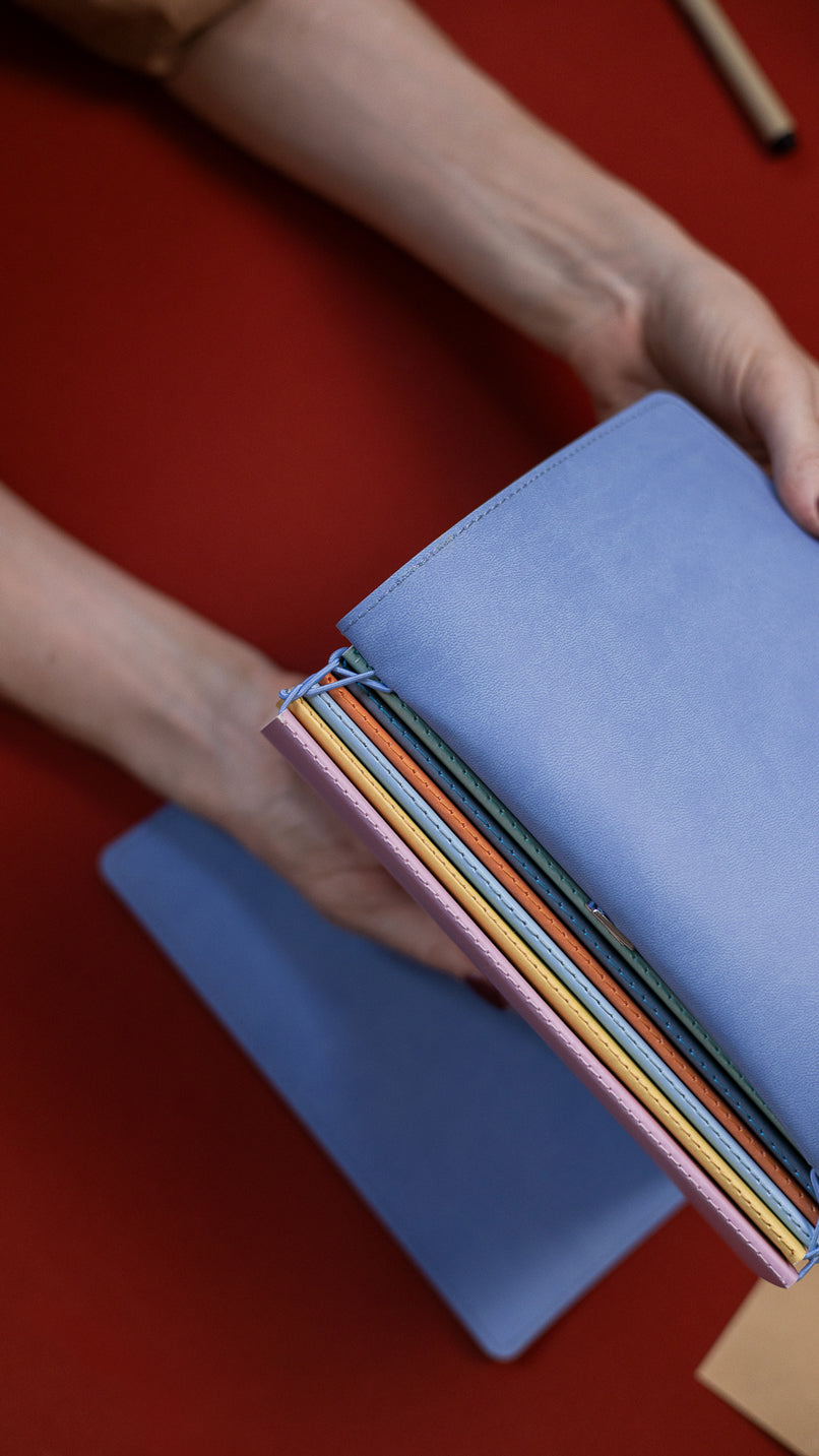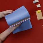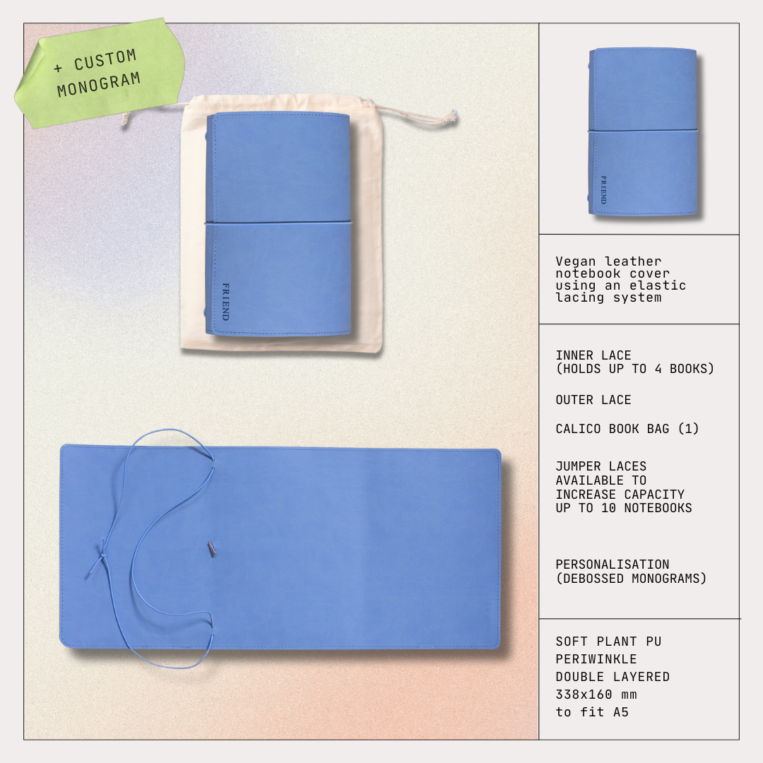 Periwinkle, our first ever trifold format, is part of our new Imagine collection. The new format comes with a much longer folio sheet which wraps around your notebooks like a warm hug. Along with being an aesthetic delight, this new design decision significantly increased the capacity of your folio which can now grow as you increase your notebook collection. To add more than 4 notebooks, you'll need to pick up an expansion lace.