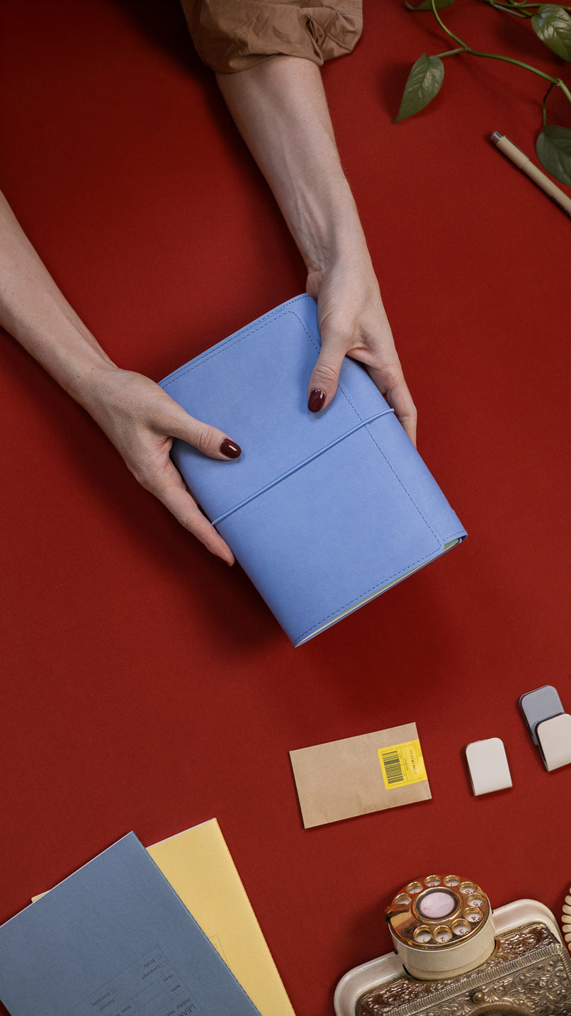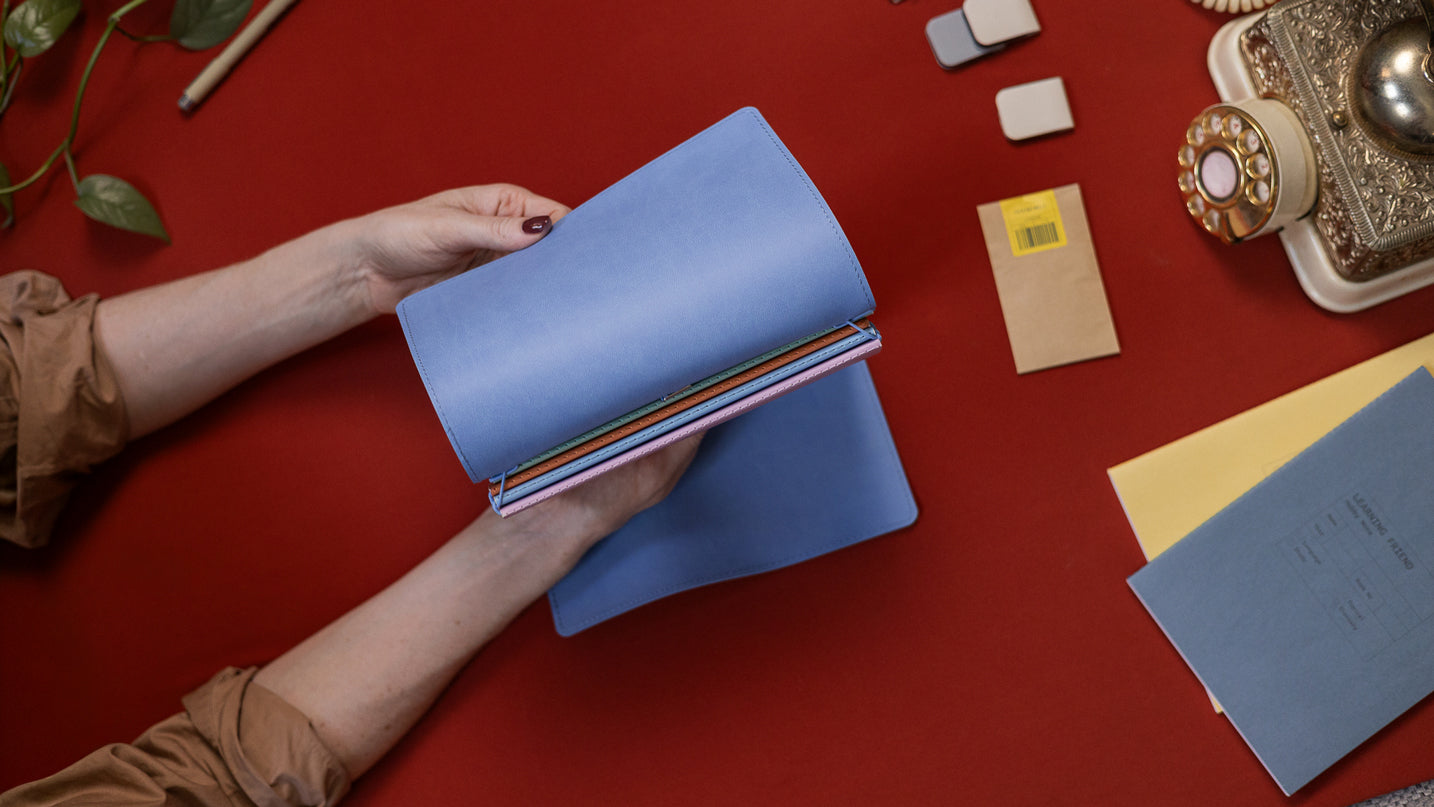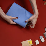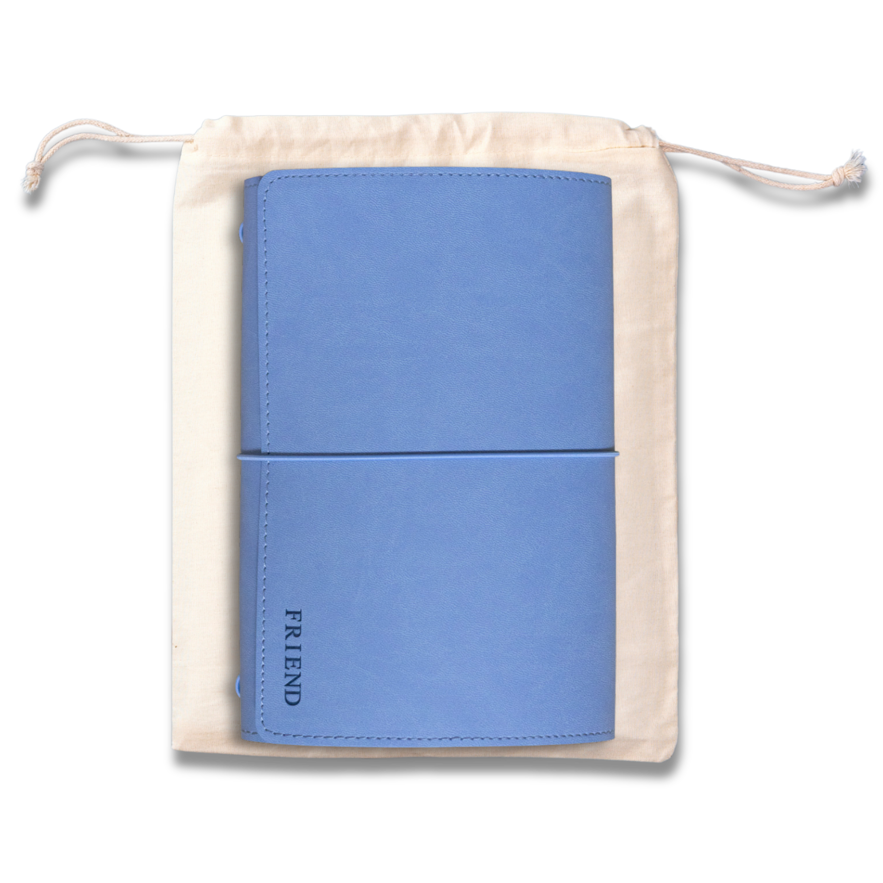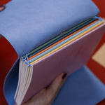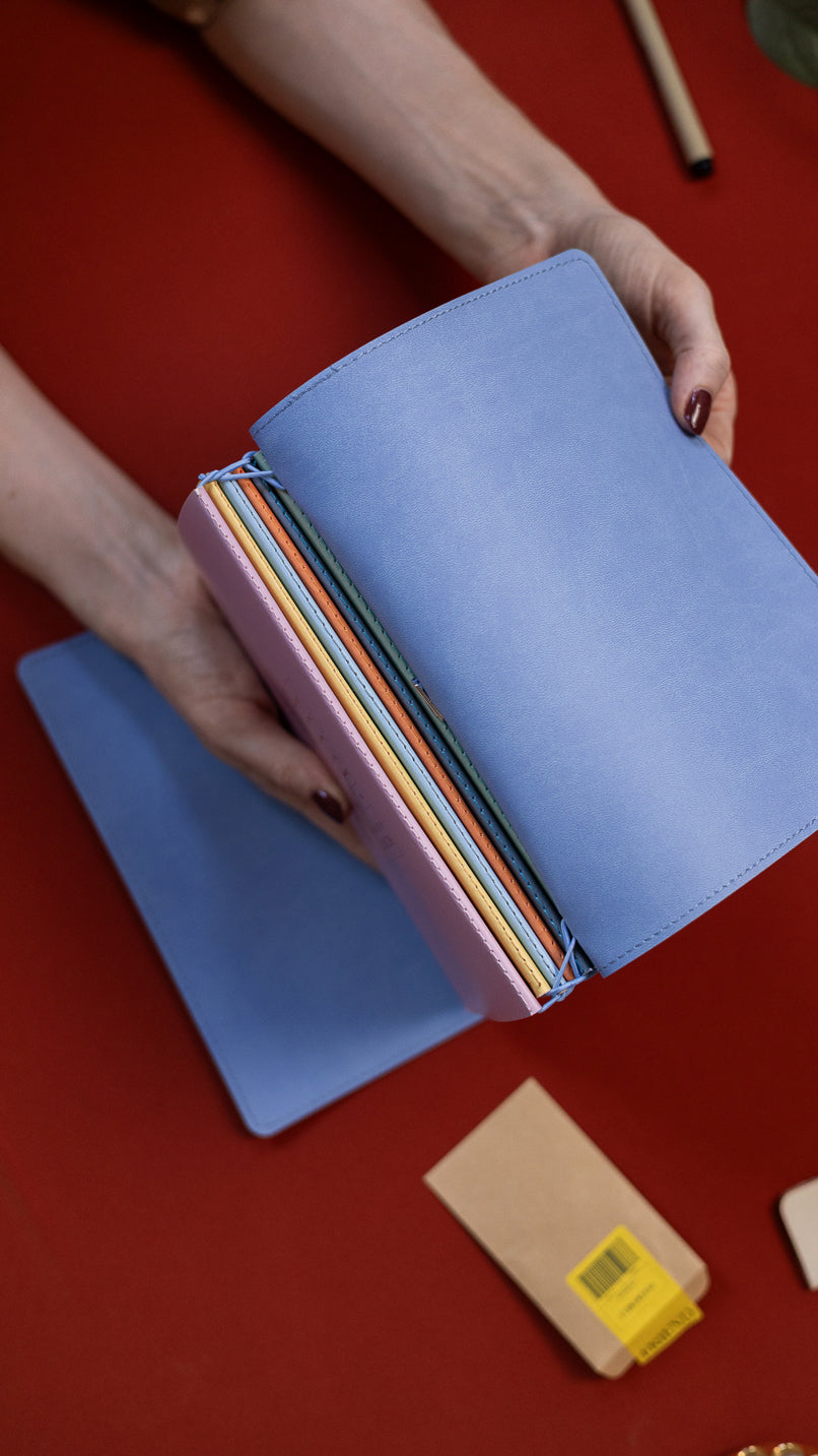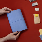 Periwinkle, our first ever trifold format, is part of our new Imagine collection. The new format comes with a much longer folio sheet which wraps around your notebooks like a warm hug. Along with being an aesthetic delight, this new design decision significantly increased the capacity of your folio which can now grow as you increase your notebook collection. To add more than 4 notebooks, you'll need to pick up an expansion lace.